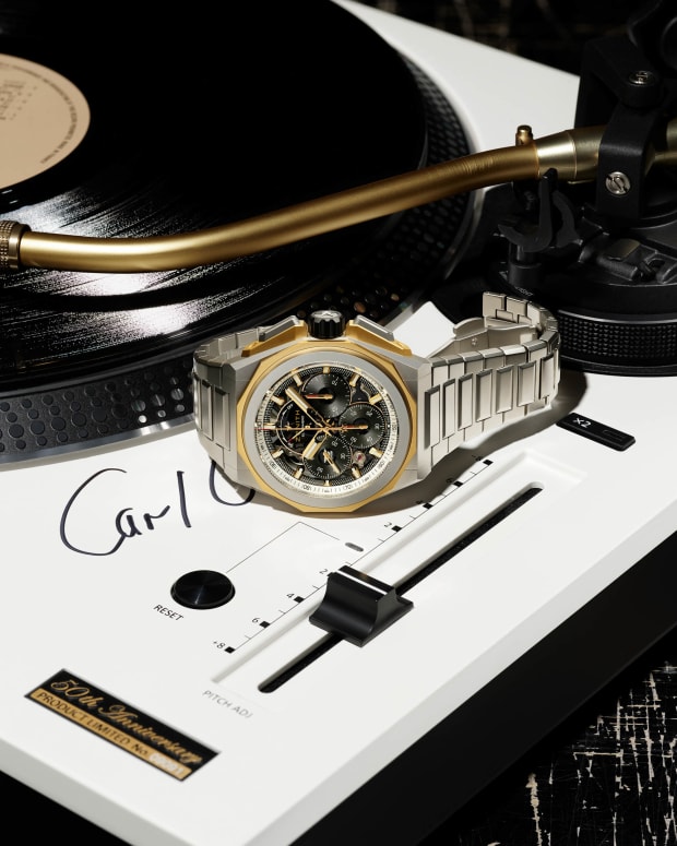 We’re told the techno legend’s new “Defy Extreme” watch features a bevy of lavish specs, including an opulent yellow-gold bezel and chronograph movement of 1/100th of a second. In a clever ode to the legendary DJ’s storied career, the timepiece also features an open dial with chronograph counters in the form of miniature vinyl records.